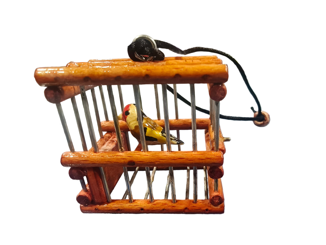 Jaula Miniatura de Palanza tipo Madrileña con Jilguero.