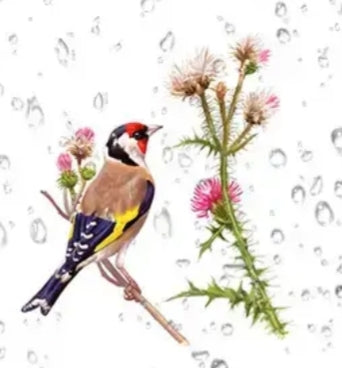 Adhesivo Jilguero en Cardo 7 cm. Impermeable