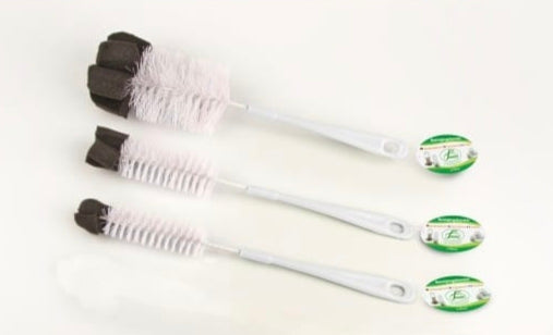Cepillo limpia bebedero con cerdas duras y punta de esponja.