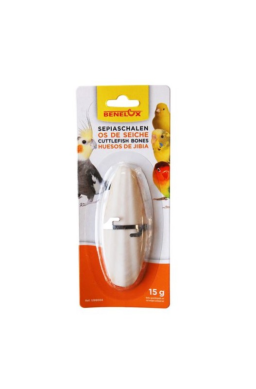 Hueso de jibia sepia individual con enganche de metal de la empresa Benelux.