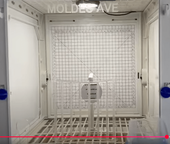 Laterales y fondo opacos: el fondo incorpora un vinilo con cuadrícula de 1 x 1 cm para medir con exactitud el tamaño del pájaro cuando se posa en el posadero.