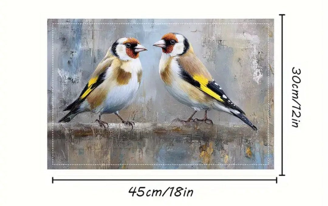 Mantel individual de tela, con estampado de jilguero.