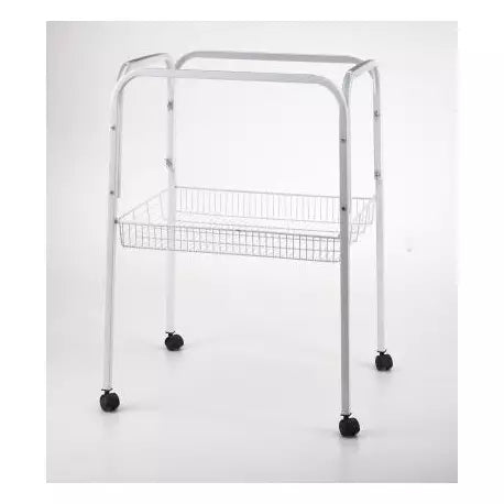 Soporte con ruedas para jaulas de loros, cotorras, ninfas y agapornis, fabricada en metal blanco es totalmente desmontable para un mejor guardado cuando no vayamos a usarla.