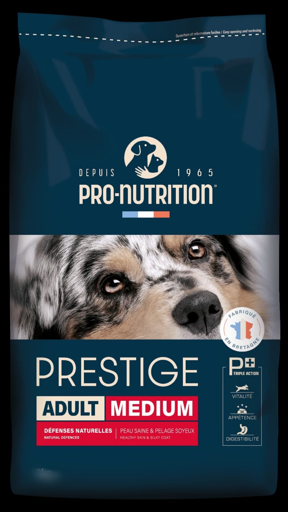 Con nuestra croqueta Prestige ADULT, tu perro se beneficia de un aporte equilibrado de 40 nutrientes esenciales , la protección de vitaminas y antioxidantes naturales (polifenoles de fibras de manzana y extractos de romero), aportándole vitalidad y salud .